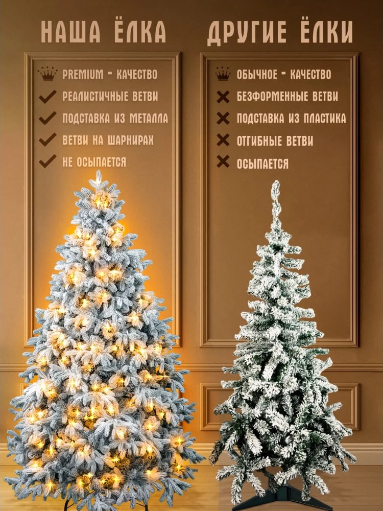 Безупречная эстетика. Пышная, аккуратная и максимально правдоподобная крона с профессионально выполненным эффектом заснеженности создает идеальный баланс между естественностью и декоративностью. Каждая деталь продумана до мелочей.
