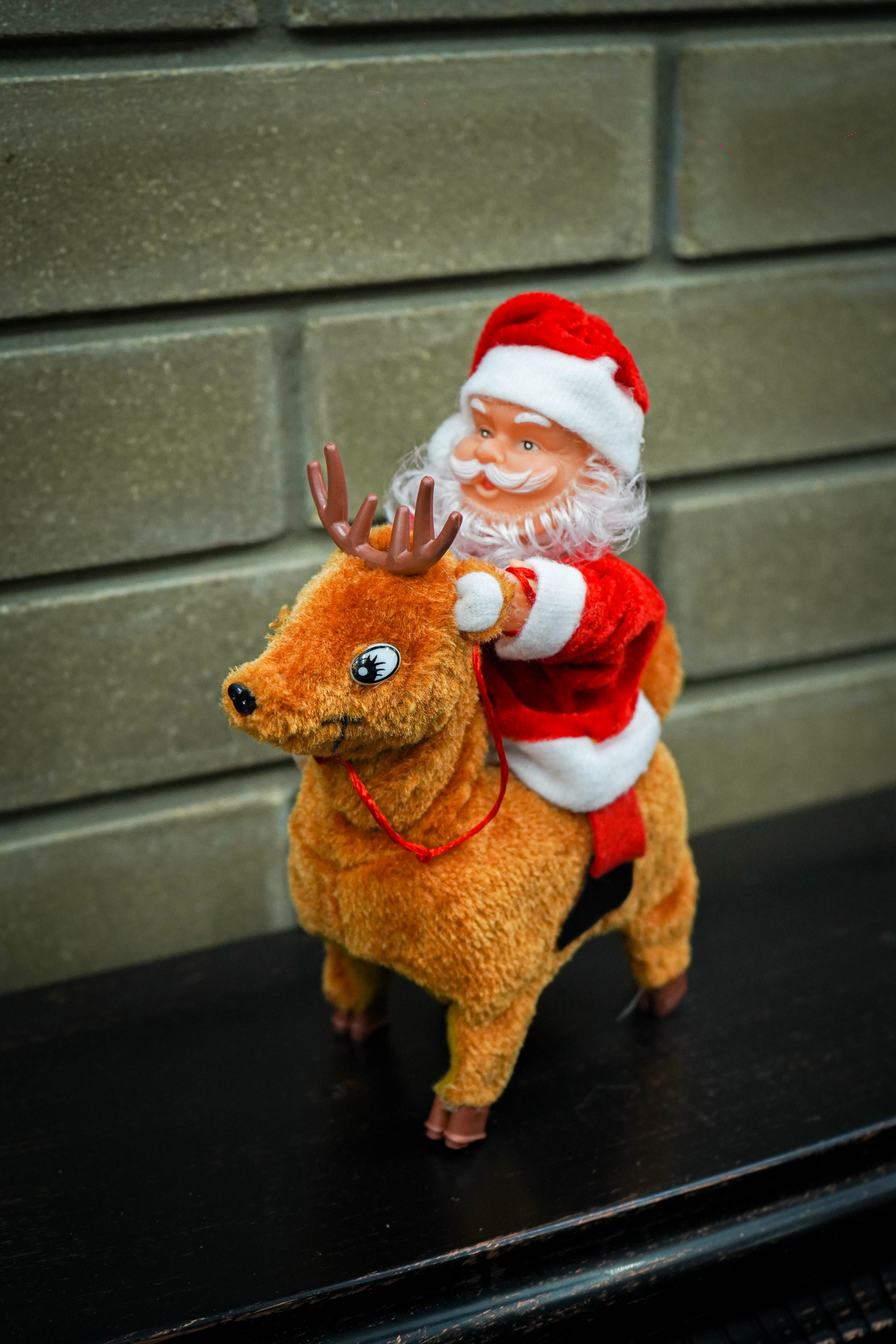 Дед Мороз 21см муз-ый на батарейках верхом на олене А 22100