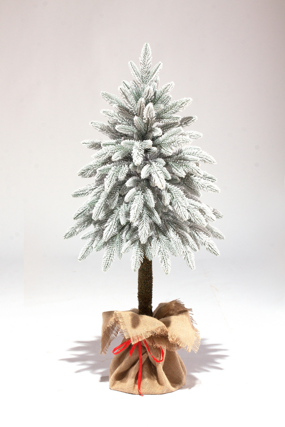 Коллекция елочек в разных высотах, припорошенных искусственным снегом на устойчивых подставках из металла, обвязанных мешковиной. Эта эксклюзивная версия для превосходного оформления витрин и фотозон.