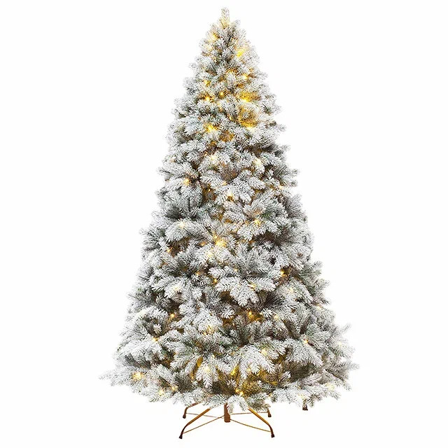 нижнего яруса и плотной шубой зеленой хвои. Подходит для просторных залов и холов. Представлена со встроенным освещением и с искусственным снегом.