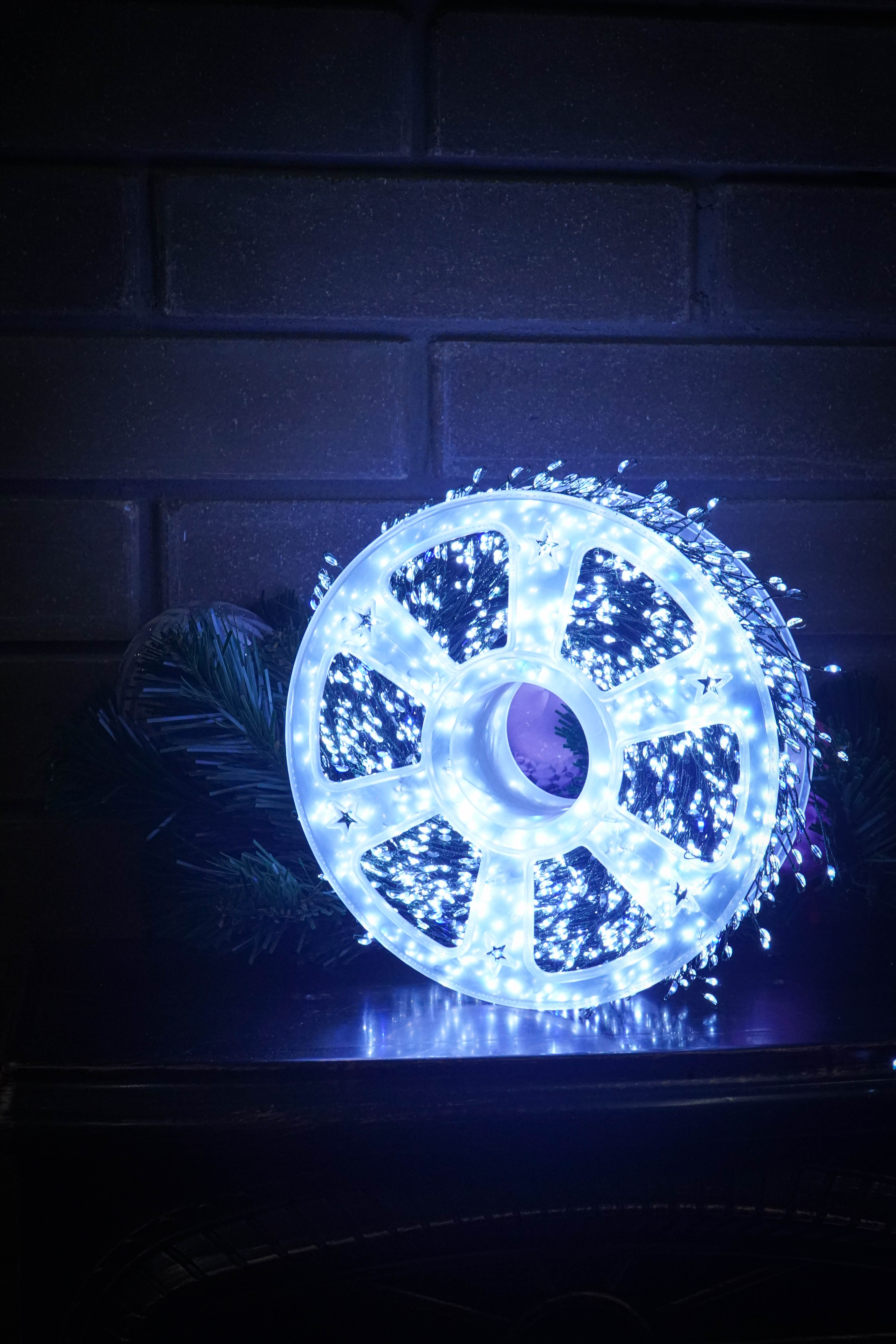 Гирлянда-Мишура ЭФ.МЕРЦАНИЯ "ХВОЙНАЯ ЛАПА" (капелька росы) зел. провод, 100м/3000л, бело/голуб. мерц