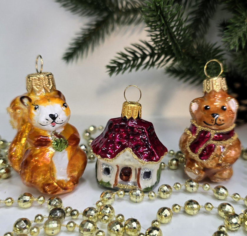 Набор ёлочных игрушек Белочка, домик и мишка
