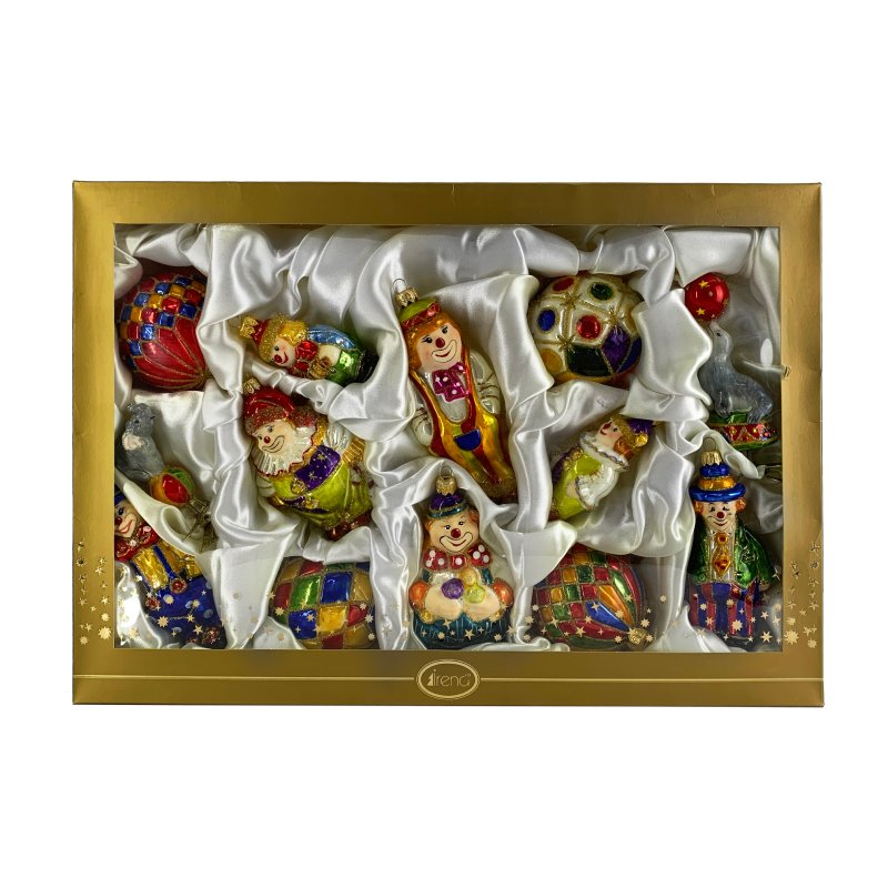 Набор включает несколько клоунов, каждый из которых уникален и имеет свой неповторимый стиль. Изготовленные из высококачественных материалов, эти игрушки прочны и безопасны в использовании. Прочные петельки обеспечивают надежное крепление на ветках елки.