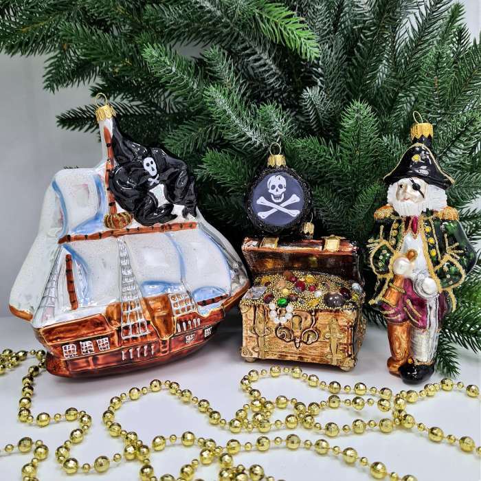 Набор ёлочных игрушек Пират, сундук, корабль и метка
