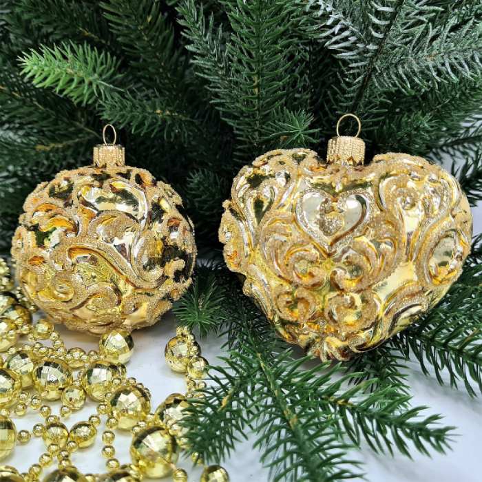 Набор ёлочных игрушек Сердце и шар золотой
