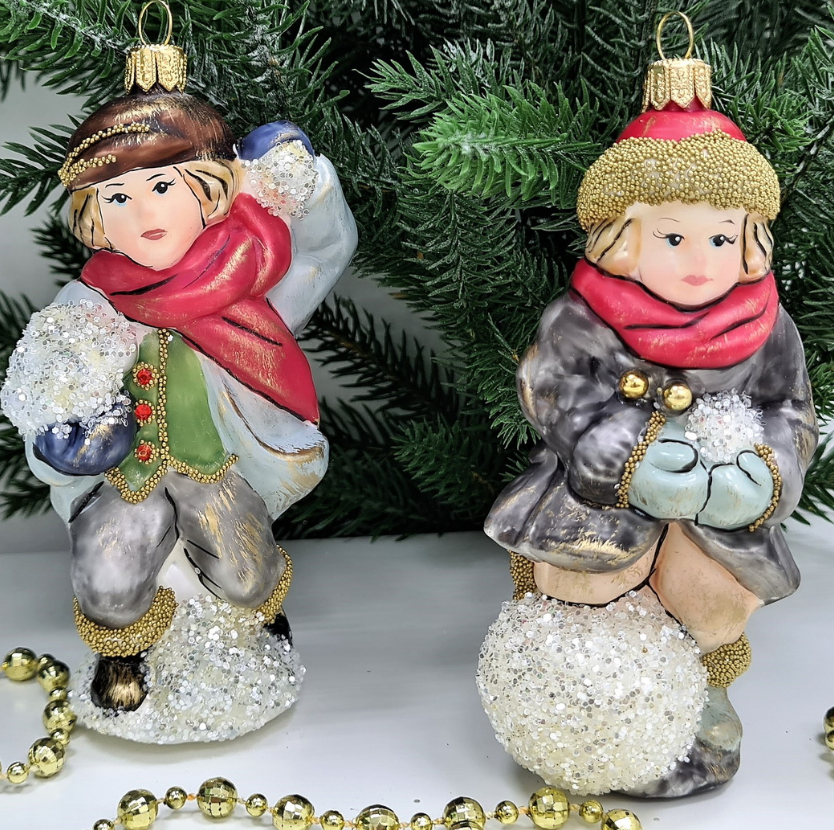 Набор стеклянных ёлочных игрушек Irena-Co представляет собой уникальное сочетание красоты и качества. В комплект входят две игрушки в виде девочки и мальчика, выполненные с любовью и вниманием к деталям.
