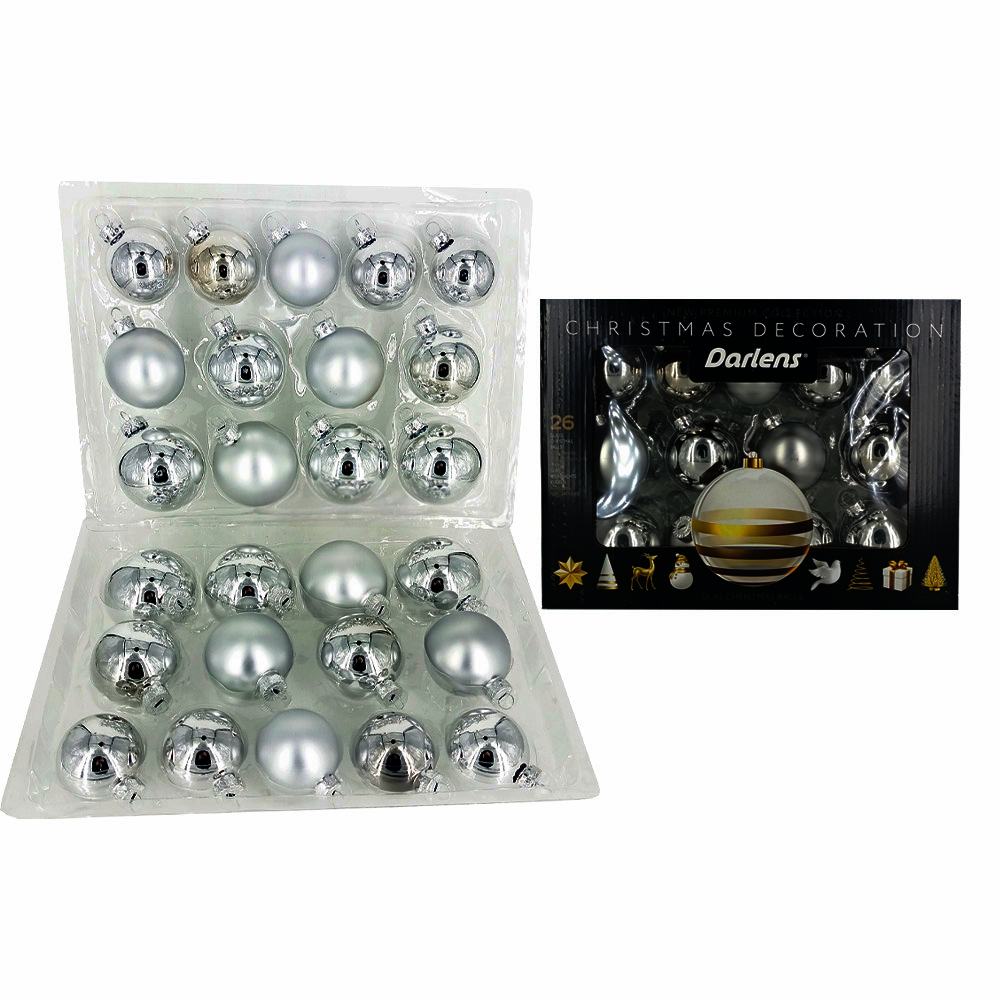 НАБОР ИЗ 26 СТЕКЛЯННЫХ ШАРОВ СЕРЕБРЯННЫЙ ЦВЕТ (DL-DRL02333)