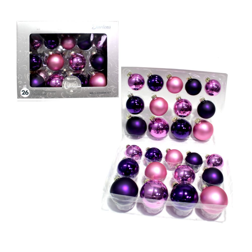 НАБОР ШАРОВ НОВОГОДНИХ ИЗ 26 ШАРОВ:5CM X 10ШТ, 6CM X 8ШТ, 7CM X 8ШТ, DL-DRL00880 (171336)