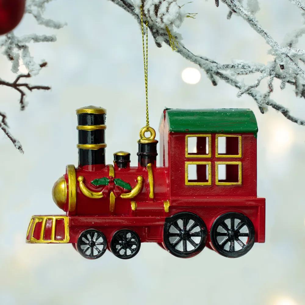 Новогоднее подвесное украшение Паровоз из пластика (полистирол) / 12х4.5х8см