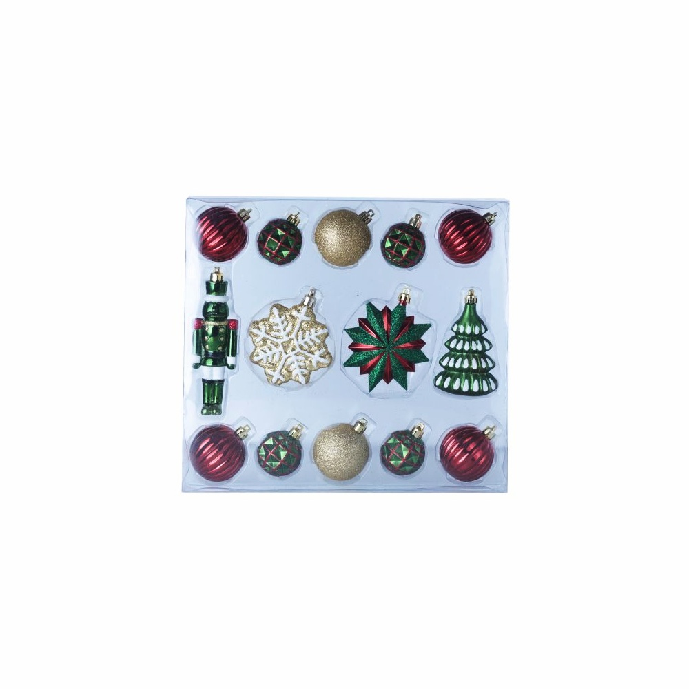 Набор елочных игрушек Щелкунчик украсит вашу елочку по мотивам сказочной истории. Украшения наполнят атмосферу праздником и радостью, создадут ощущение предвкушения чего-то волшебного. В набор входит 14 елочные игрушки, которые выполнены из пластика - легкого и прочного материала, поэтому они будут красоваться на вашей елке ни один год. Такой набор также послужит отличным подарком для ваших близких.