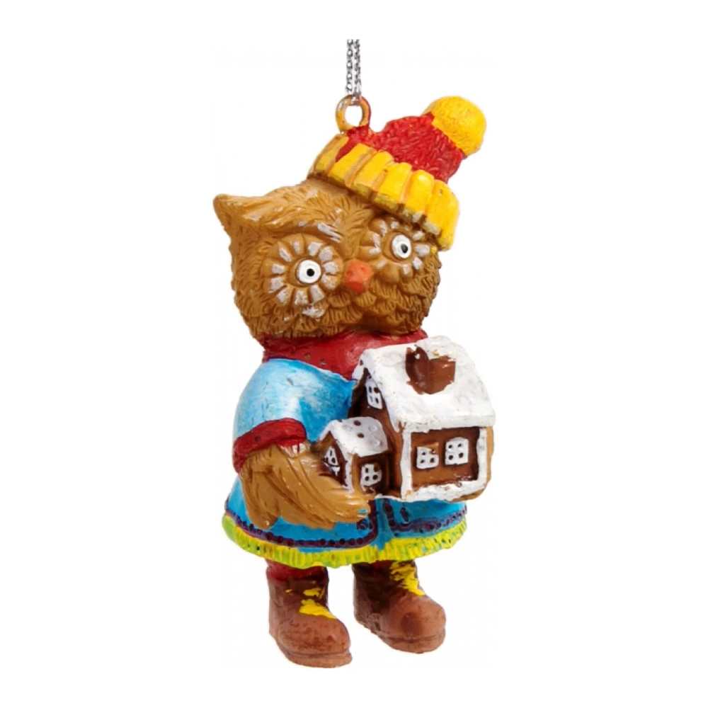 Новогоднее подвесное украшение Сова с домиком из полирезины / 3х3х5,5см