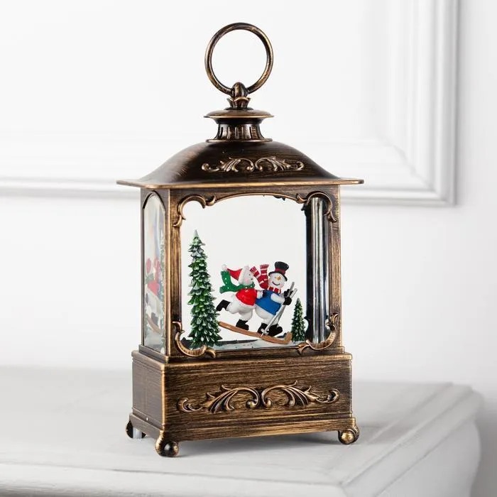 Новогодний музыкальный фонарик с подсветкой и снежным вихрем лампа Снеговик.