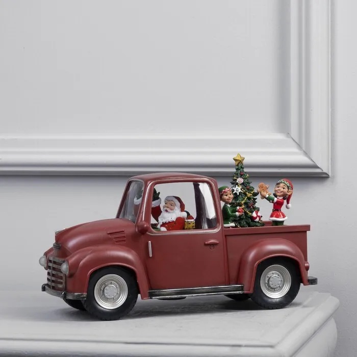 Новогодний музыкальный фонарик с подсветкой и снежным вихрем машина Дед Мороз и Эльфы 28*11*13 см