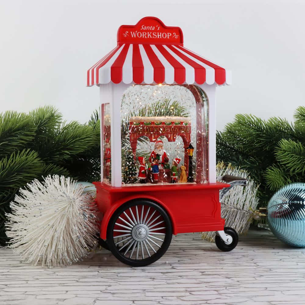 Новогодний музыкальный фонарик телега с Дедом Морозом с подсветкой и снежным вихрем для украшения интерьера. Классический символ зимнего праздника украсит вашу лесную красавицу или любое место в вашем интерьере, напоминая о зимнем семейном празднике. Станет хорошим подарком для близких.