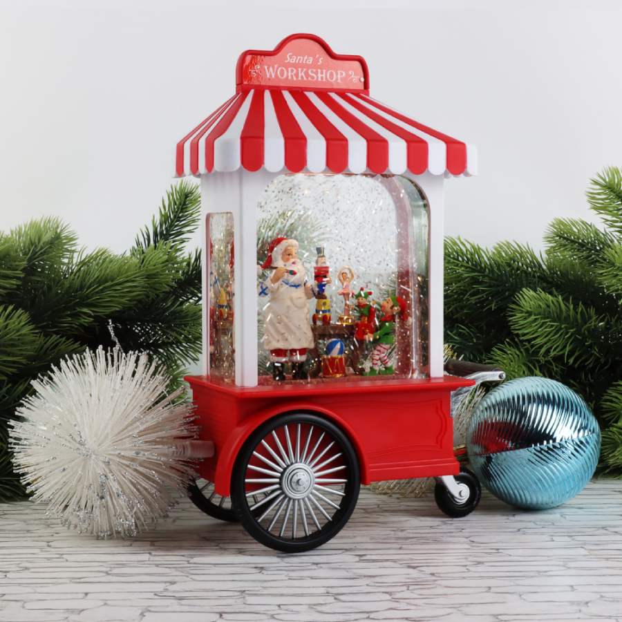 Новогодний музыкальный фонарик с подсветкой и снежным вихрем телега Дед Мороз и Эльфы 16*9*27 см