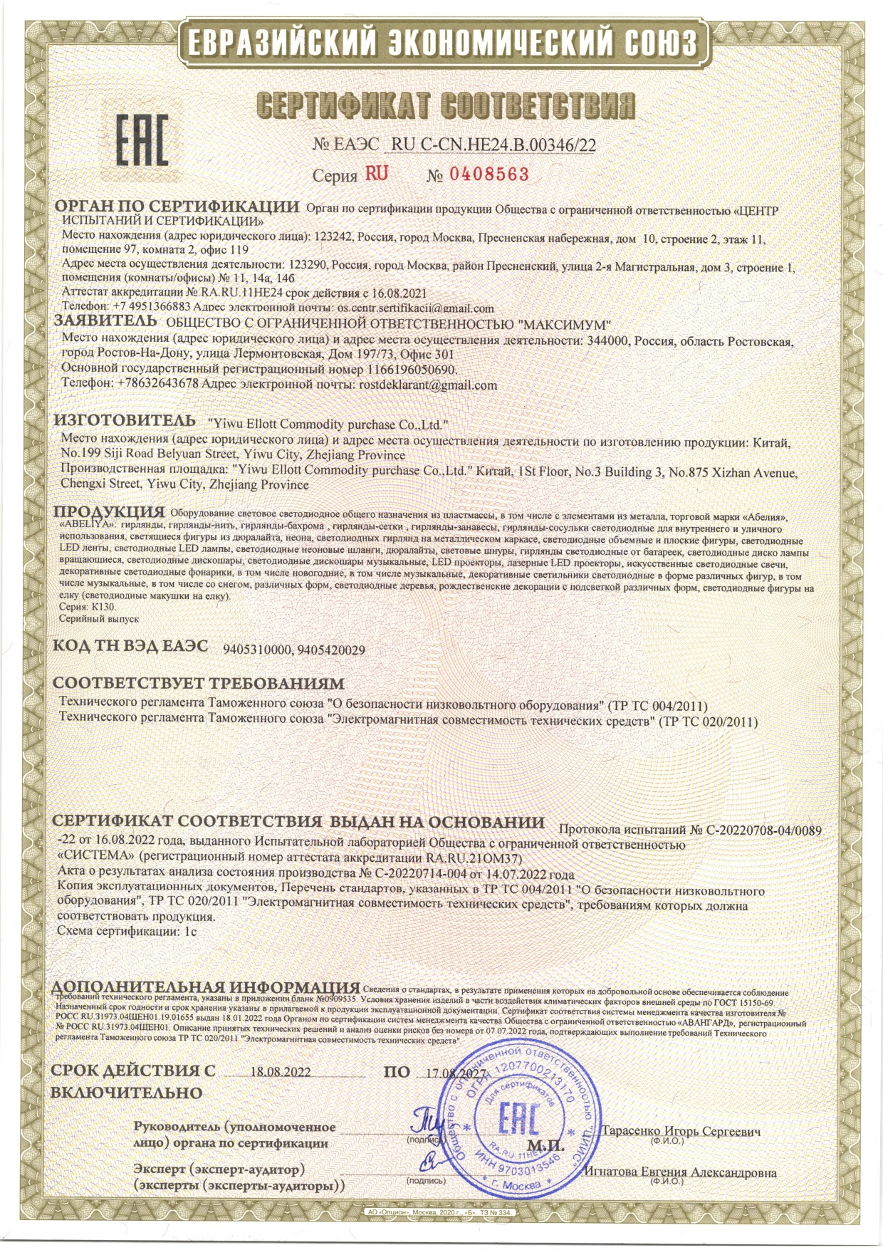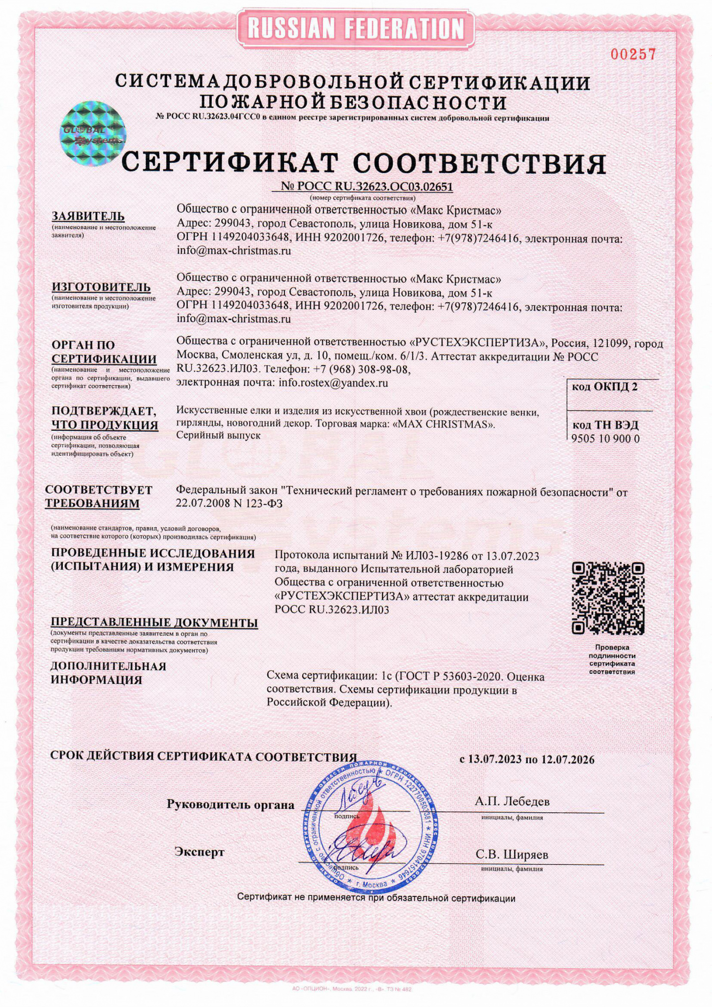 Сертификат по ёлочным шарам: