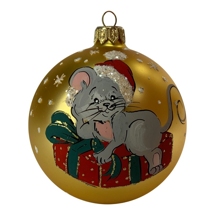Этот элегантный стеклянный шар диаметром 80 мм украшен символом 2020 года, что делает его уникальным дополнением к вашему новогоднему декору. Изготовлен из высококачественного стекла, шар имеет прочную петельку для надежного крепления на елке. Идеально подходит для создания современного и стильного праздничного настроения.
