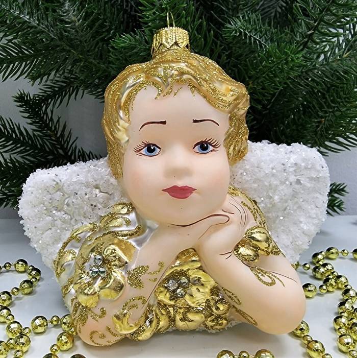 Стеклянная елочная игрушка Ангел большой-2