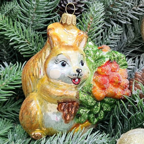 Технические характеристики Стеклянная елочная игрушка Белочка с рябиной