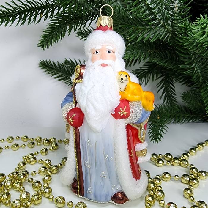 Стеклянная ёлочная игрушка "Дед Мороз красный с белочкой" - это уникальное украшение, которое добавит праздничного настроения на вашу новогоднюю елку.