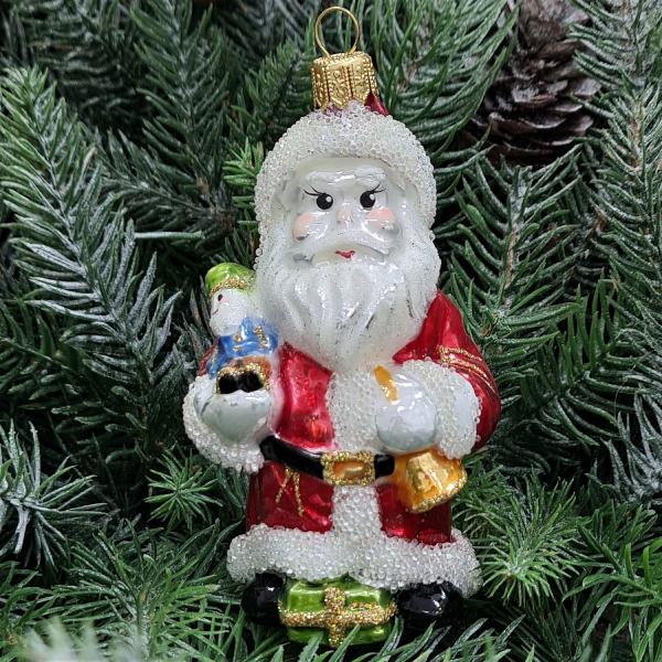 Стеклянная елочная игрушка Дед Мороз с солдатиком
