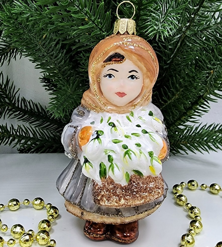 Стеклянная елочная игрушка Девочка с подснежниками-2