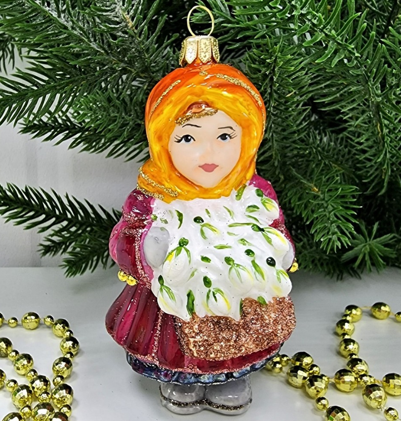 Стеклянная елочная игрушка Девочка с подснежниками-3