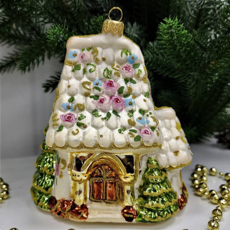 Стеклянная елочная игрушка Домик Мельница Версаль