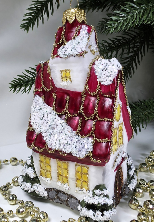 Стеклянная елочная игрушка Домик с острой крышей, 1-1892