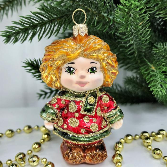 Стеклянная ёлочная игрушка Домовенок Кузя в бордовой рубашке выполнена в форме сказочного персонажа. Ручная роспись каждого элемента придает игрушке неповторимый характер и индивидуальность.