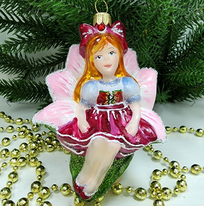 Стеклянная ёлочная игрушка "Дюймовочка" от Irena Co - это уникальное украшение для вашей новогодней елки.