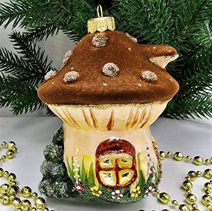 Стеклянная ёлочная игрушка в виде гриба домика – это не просто украшение, это маленькая деталь, которая создаст атмосферу уюта, великолепия и волшебства в каждом доме в Новый год.