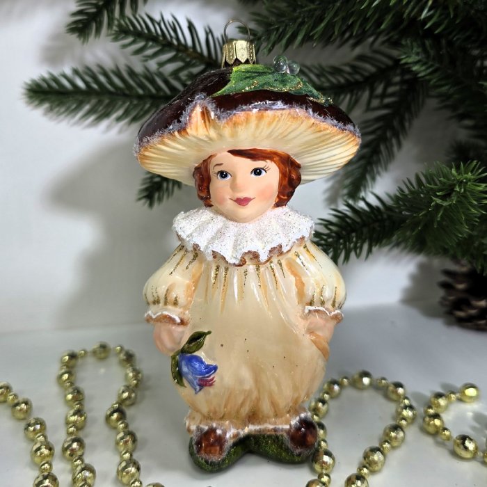 Стеклянная ёлочная игрушка Irena-Co Мальчик грибочек (12,5х6,5х6,5см)