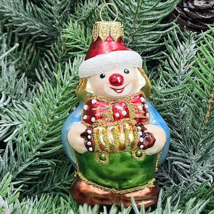 Стеклянная елочная игрушка Клоун с гармошкой