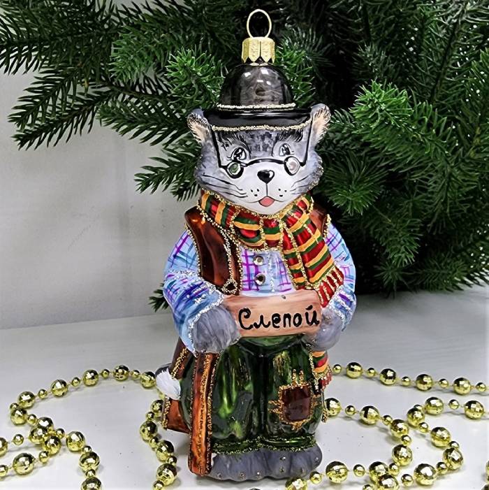 Стеклянная ёлочная игрушка "Кот" от Irena-Co — это изысканное и неповторимое украшение для новогодней ёлки. Благодаря ручной работе и авторской росписи каждая игрушка приобретает уникальный характер.