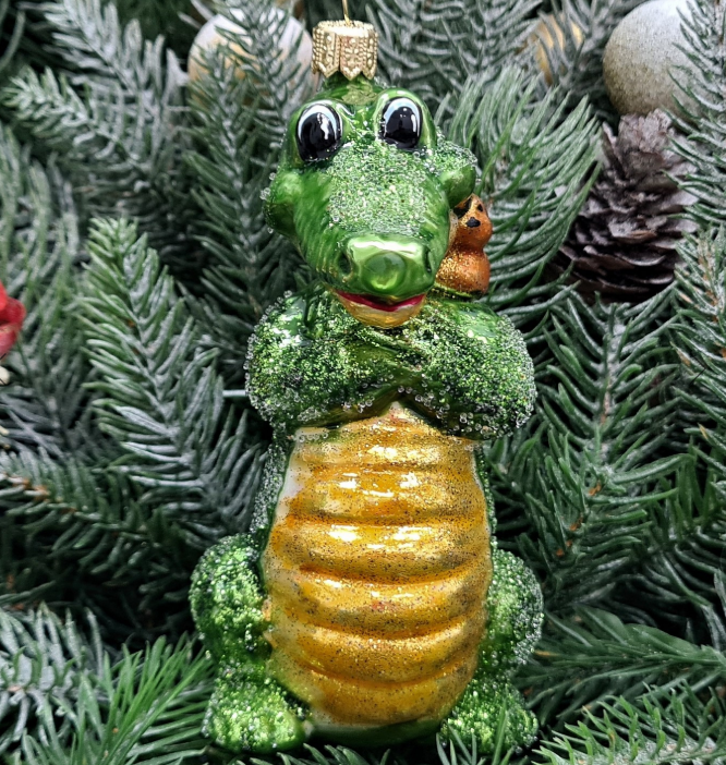 Стеклянная ёлочная игрушка Irena-Co Крокодил - это уникальное украшение, которое добавит праздничного настроения на вашу новогоднюю елку.