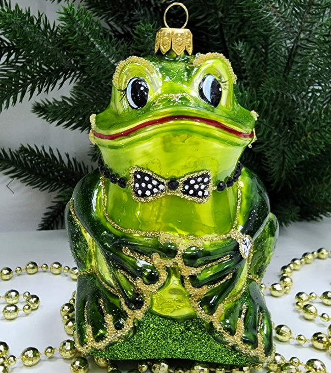 Стеклянная елочная игрушка Лягушка-Он