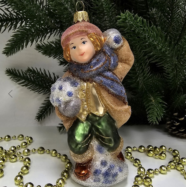 Стеклянная елочная игрушка Мальчик со снежком сахар