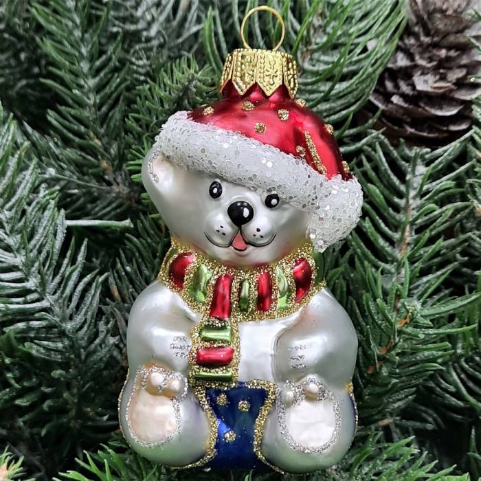 Стеклянная ёлочная игрушка «Мишка» от Irena Co — это не просто украшение, а настоящий символ детства и радости, который сразу же вызывает воспоминания о праздничных вечерах.