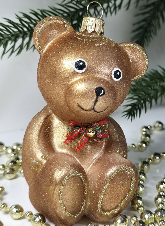 Стеклянная елочная игрушка Мишка с бантом