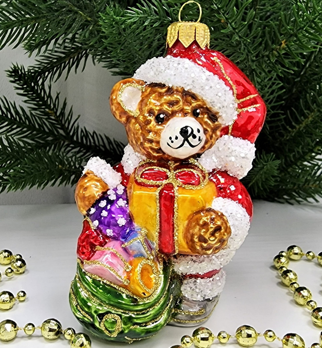 Игрушка "Мишка с подарками" станет отличным дополнением к вашей новогодней елке, создавая атмосферу праздника и радости.
