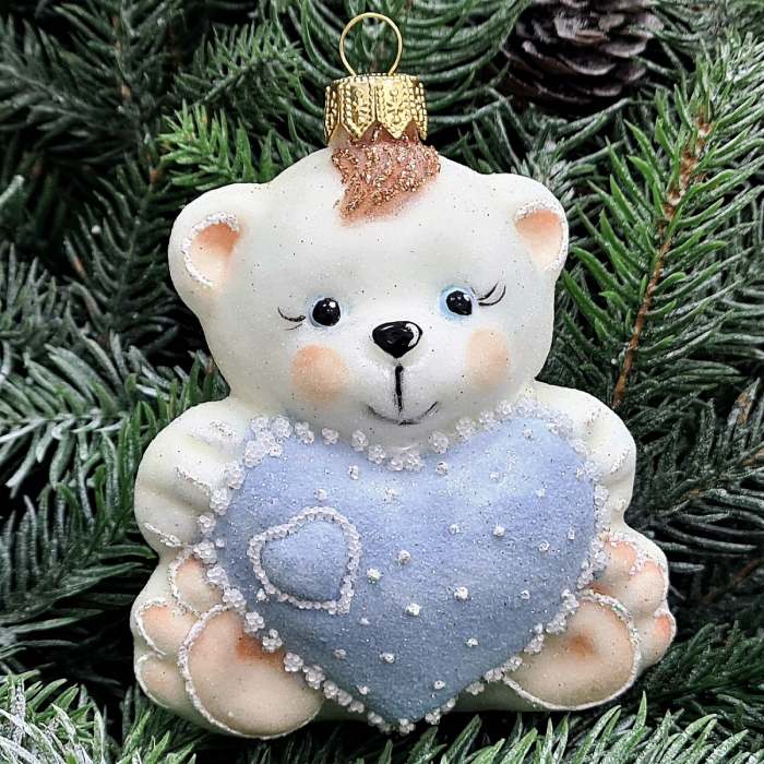 Стеклянная елочная игрушка Мишка с сердцем