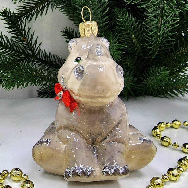 Стеклянная елочная игрушка Носорог малый