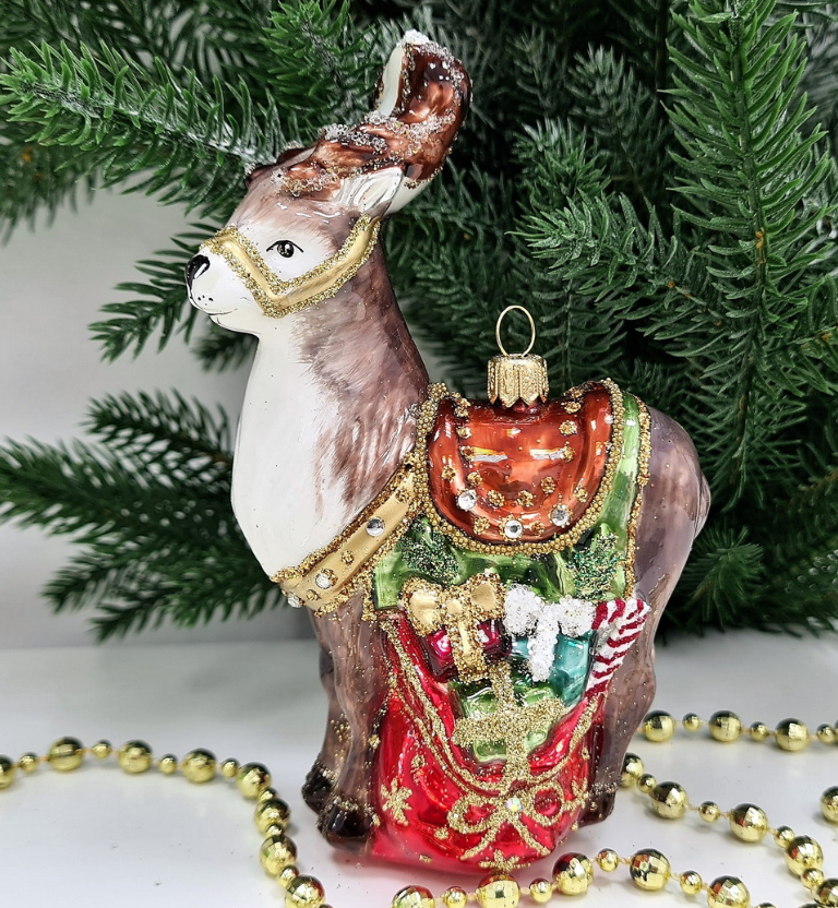 Стеклянная ёлочная игрушка "Олень с подарками" от Irena Co - это не просто украшение, это символ новогоднего волшебства и радости.