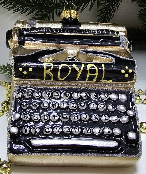 теклянная елочная игрушка "Печатная машинка ретро" от Irena-Co - это уникальное и стильное украшение для вашей новогодней елки.