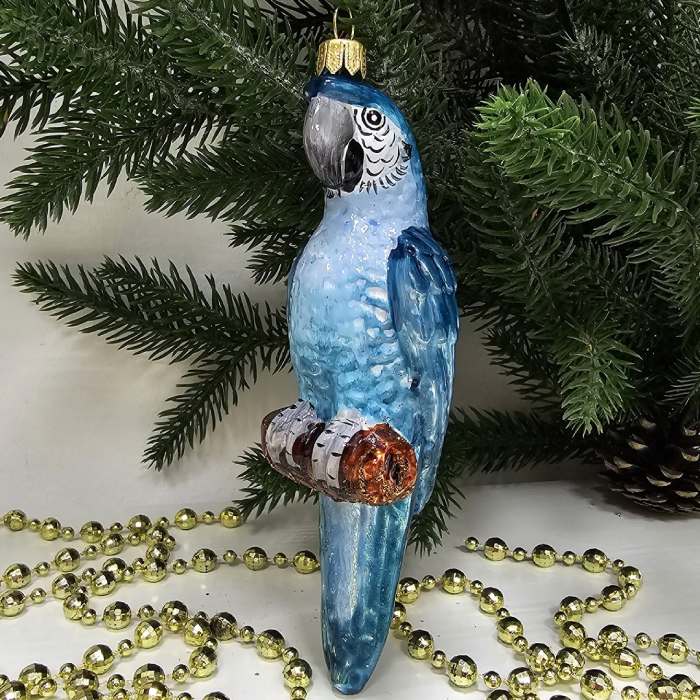 В комплекте идет одна стеклянная ёлочная игрушка "Попугай голубой".