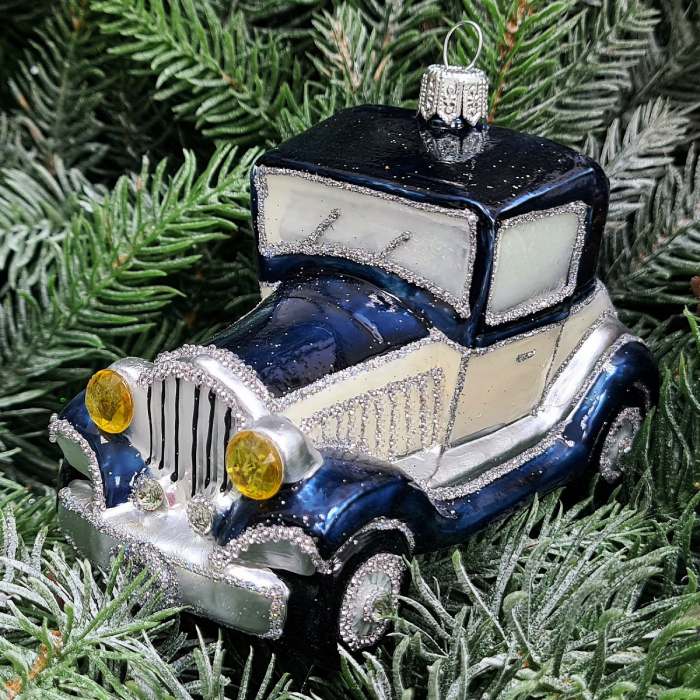Стеклянная ёлочная игрушка Автомобиль: очарование ретро-стиля. Подарите своему новогоднему празднику особенное очарование с этой уникальной стеклянной елочной игрушкой в форме автомобиля. Выполненная из высококачественного стекла, она станет великолепным украшением для вашей ёлки и добавит выразительности и праздничного настроения.