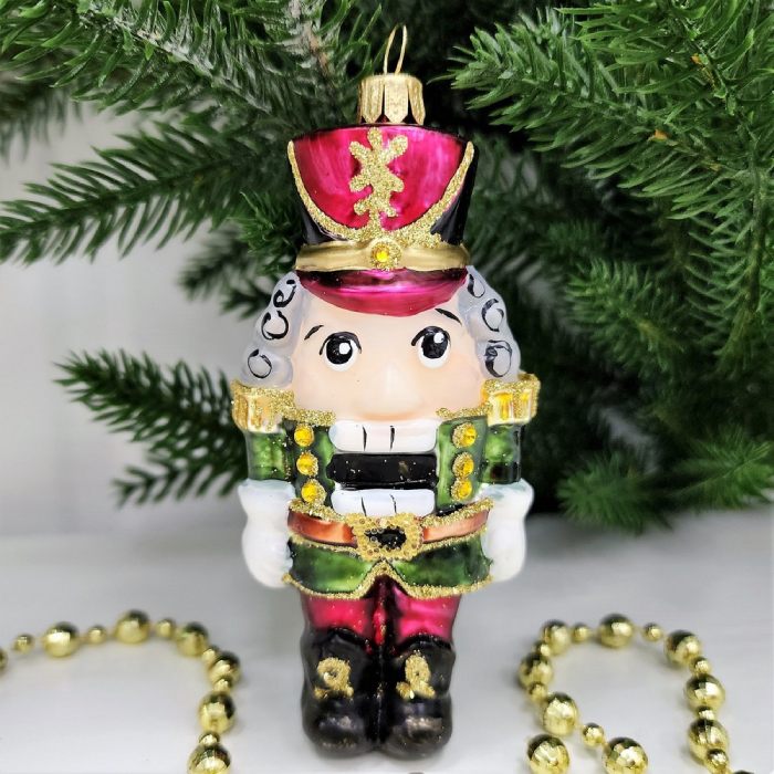 Игрушка выполнена из стекла и имеет ручной принт, что придает ей неповторимый вид. Щелкунчик малый – это формовая елочная игрушка, которая станет отличным дополнением к вашей новогодней елке.