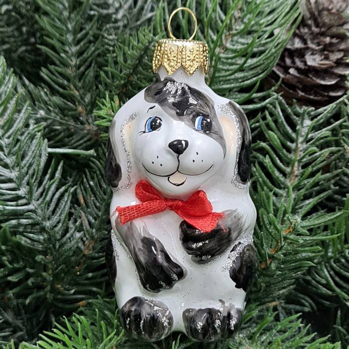 Стеклянная елочная игрушка Щенок
