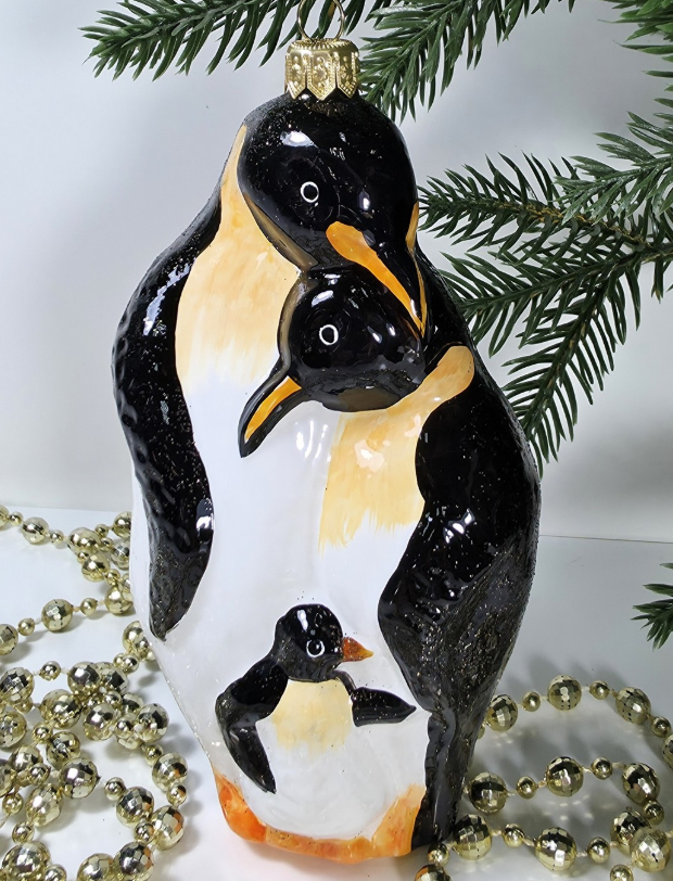 Поздравьте своих близких с праздником, украсив елку восхитительной стеклянной игрушкой в виде Семьи пингвинов. Эта прекрасная елочная игрушка станет ярким акцентом среди других украшений, добавляя особое настроение в ваш дом. Каждая деталь выполнена с любовью и вниманием к качеству, что делает ее не только красивым, но и надежным элементом для праздничного декора.